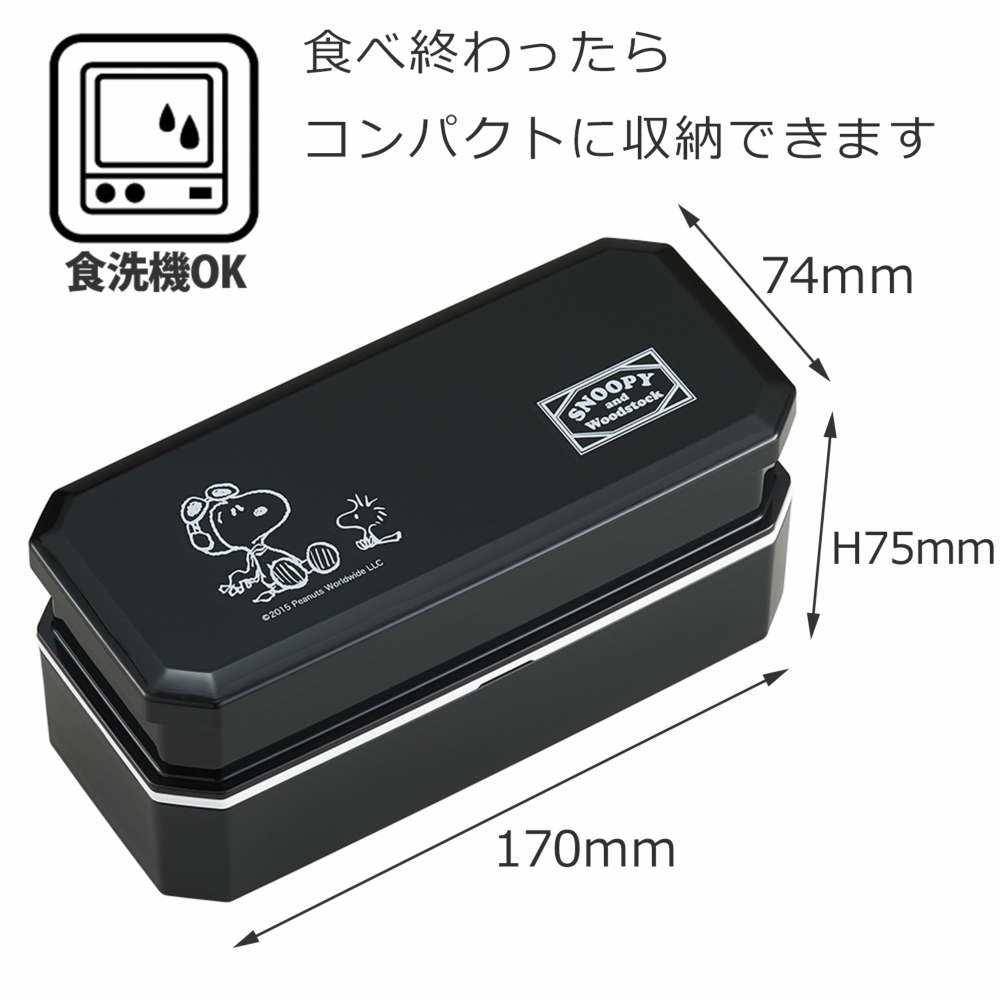 【本体サイズ】 ●サイズ:約17.0×7.4×H7.5cm 【材質】 本体・フタ・中子:AS 仕切・シールフタ:PP 箸:PMMA 【その他】 ●容量:(上)260ml(下)340ml●15.0cmの箸・中子(大)100ml(小)70ml・仕切・ランチベルト付き●耐熱温度:本体・フタ・中子・箸=100度、シールフタ・仕切=140度●食べ終わったらコンパクトに収納できます。