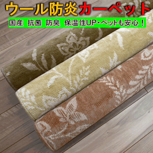 カーペット 6畳 ラグ じゅうたん ラグマット 防炎 絨毯 ウール混 日本製 防ダニ 抗菌 防臭 丸巻き フラワー 花柄【NNフラワリー】 江戸間6畳 261×352cm ◇フラワリー6帖◆